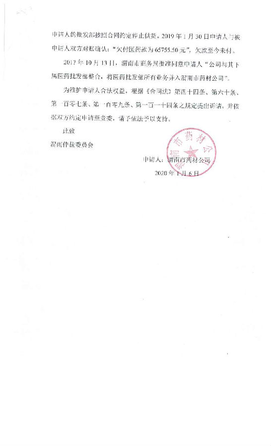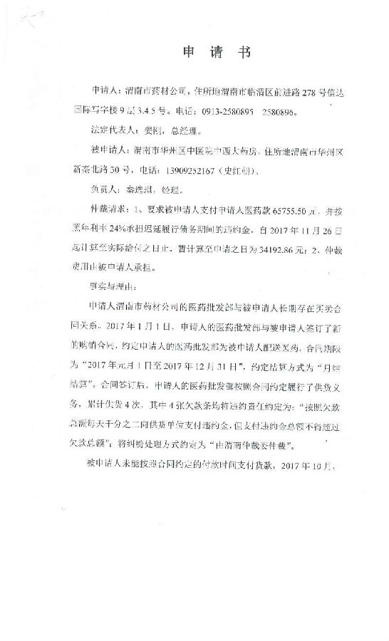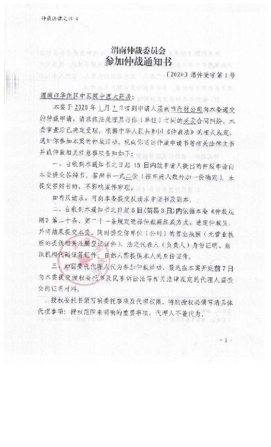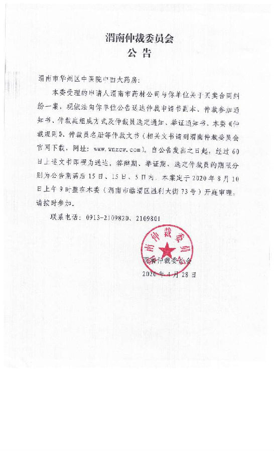 渭南市藥材公司與渭南市華州區(qū)中醫(yī)院中西大藥房一案公告