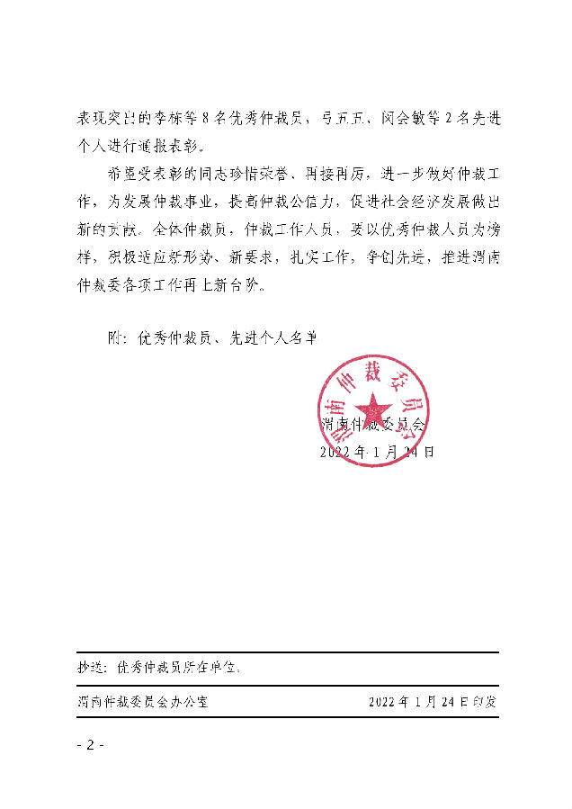 渭南仲裁委員會 關于表彰優(yōu)秀仲裁員、先進個人的決定