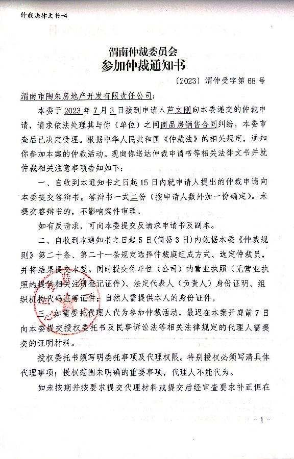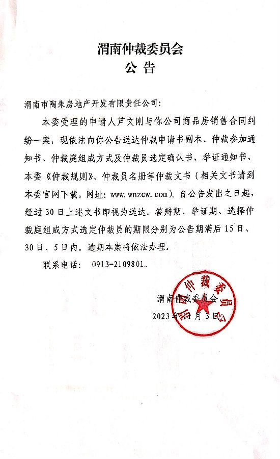 蘆文剛與渭南市陶朱房地產(chǎn)開發(fā)有限責(zé)任公司一案公告