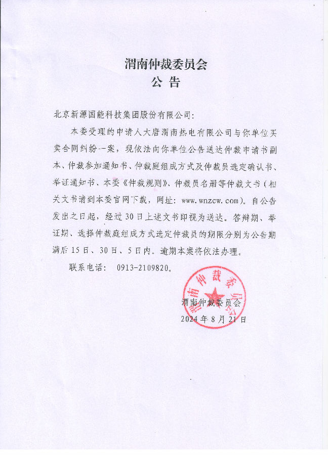 北京新源國能科技集團股份有限公司買賣合同糾紛案公告